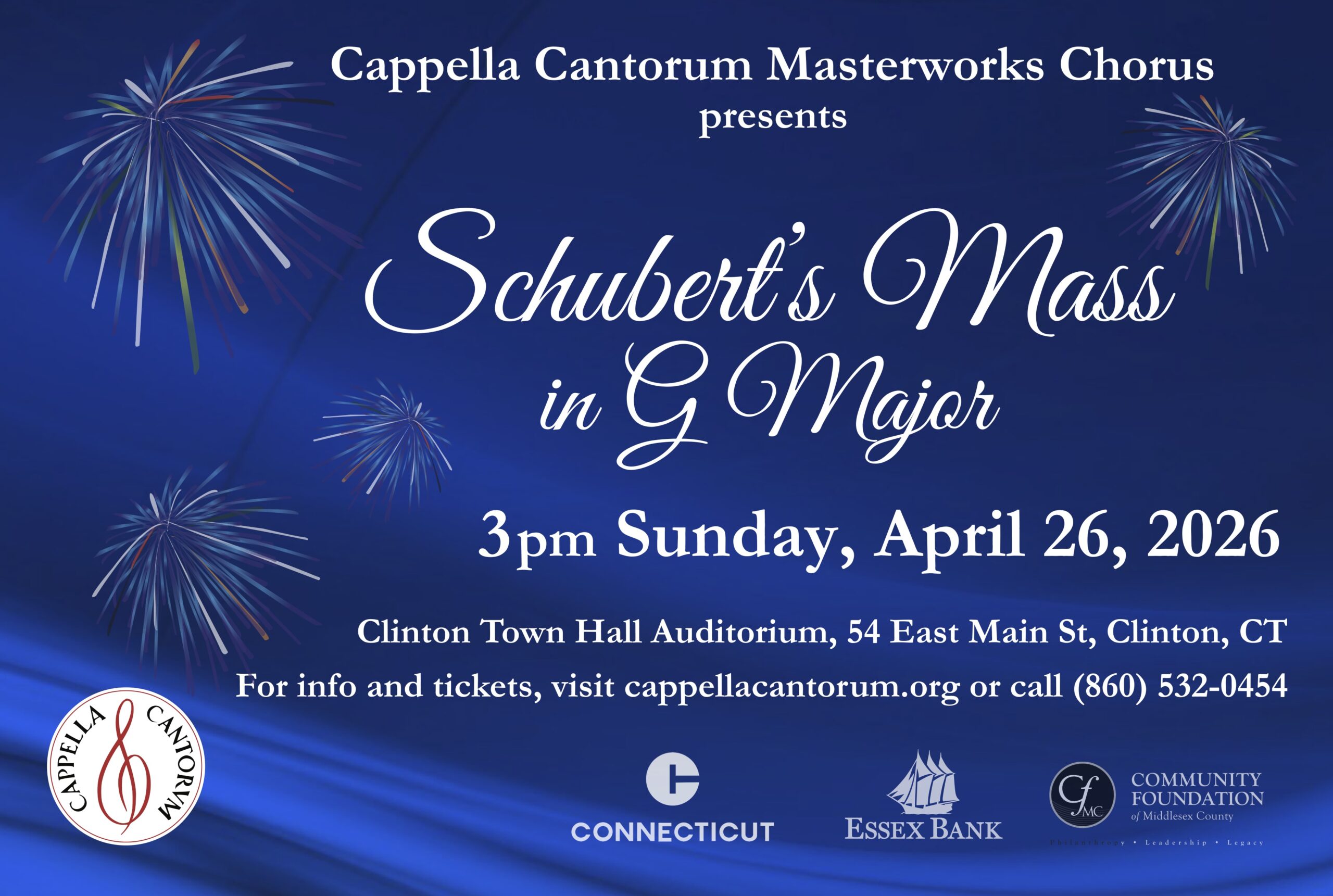- The Spring Concert will take place on Sunday, April 26, 2026 in the Auditorium of Clinton Town Hall, Clinton, CT.